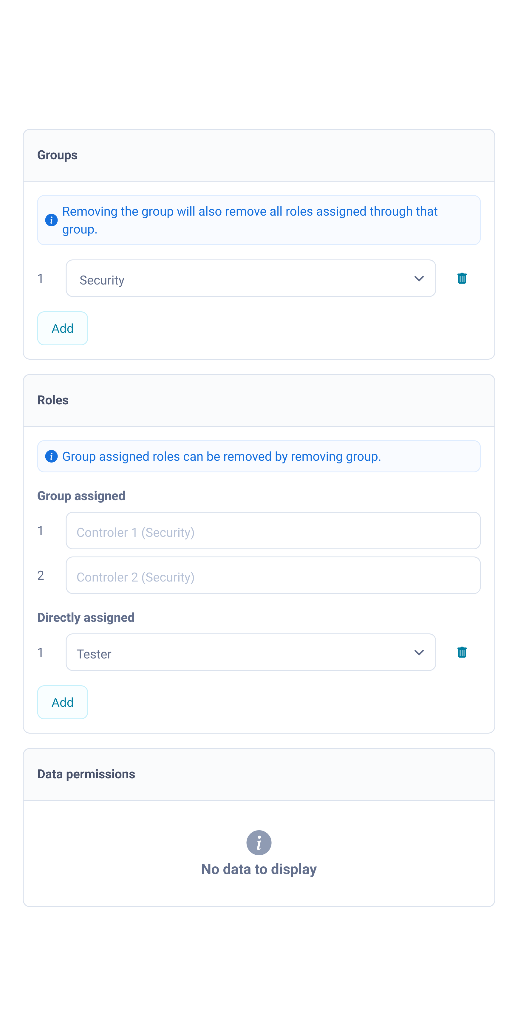 A greenfield access management module using an RBAC permission model, where I designed the interaction model for configuring organisational access under strict audit and security constraints.