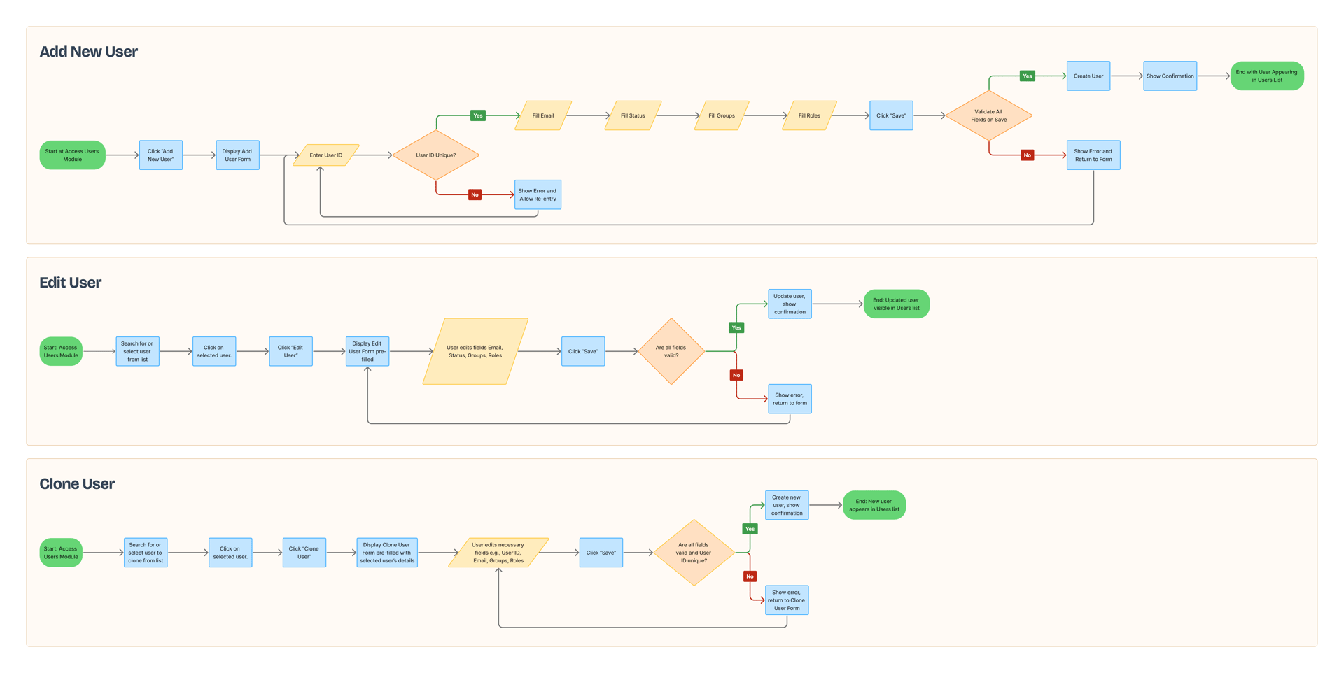 The greenfield access management module became the leverage point to consolidate fragmented interaction patterns across the platform, which allowed design to introduce structural fixes affecting multiple modules.