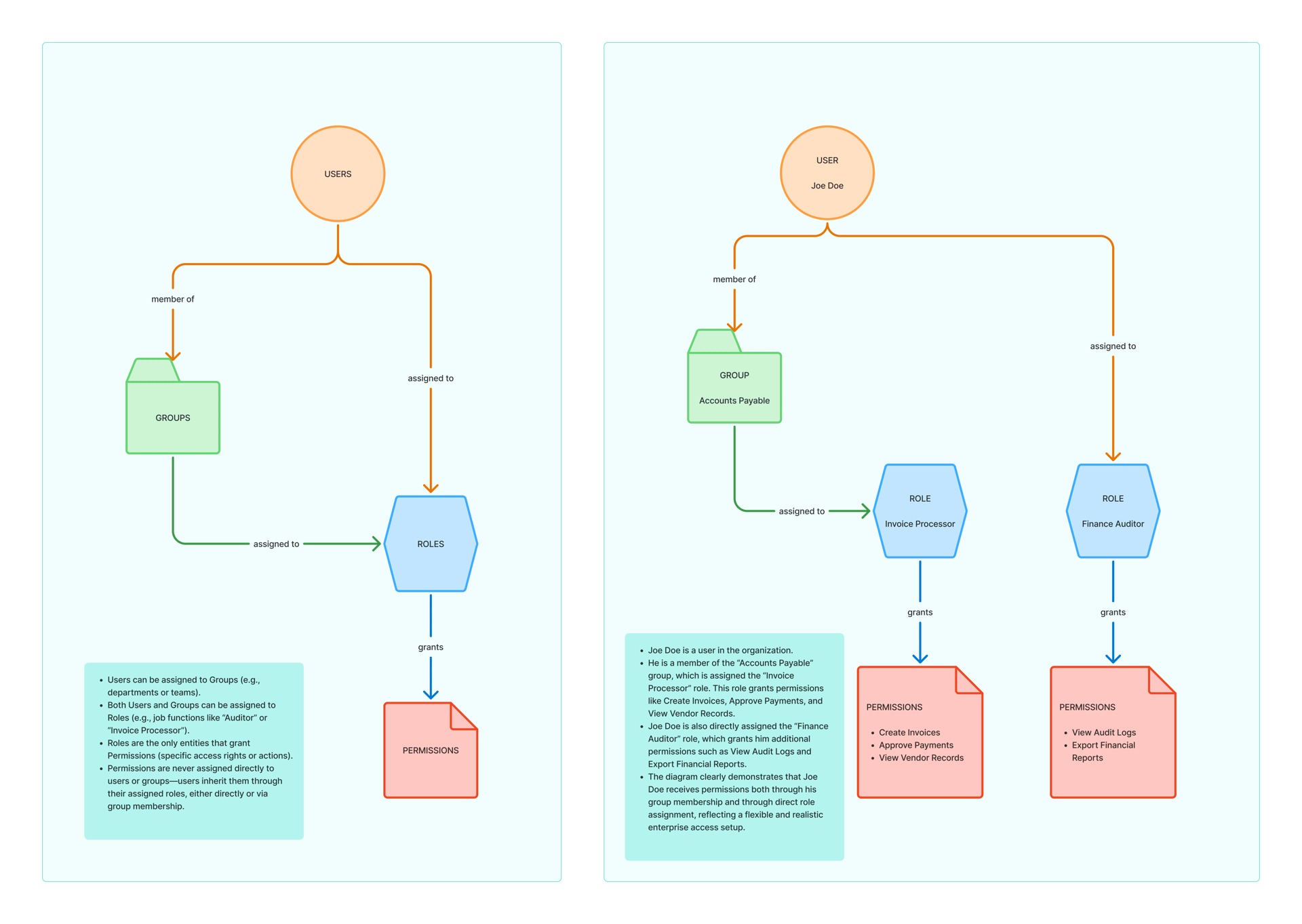 Permissions were never assigned directly — they always flowed through roles, often inherited through groups.