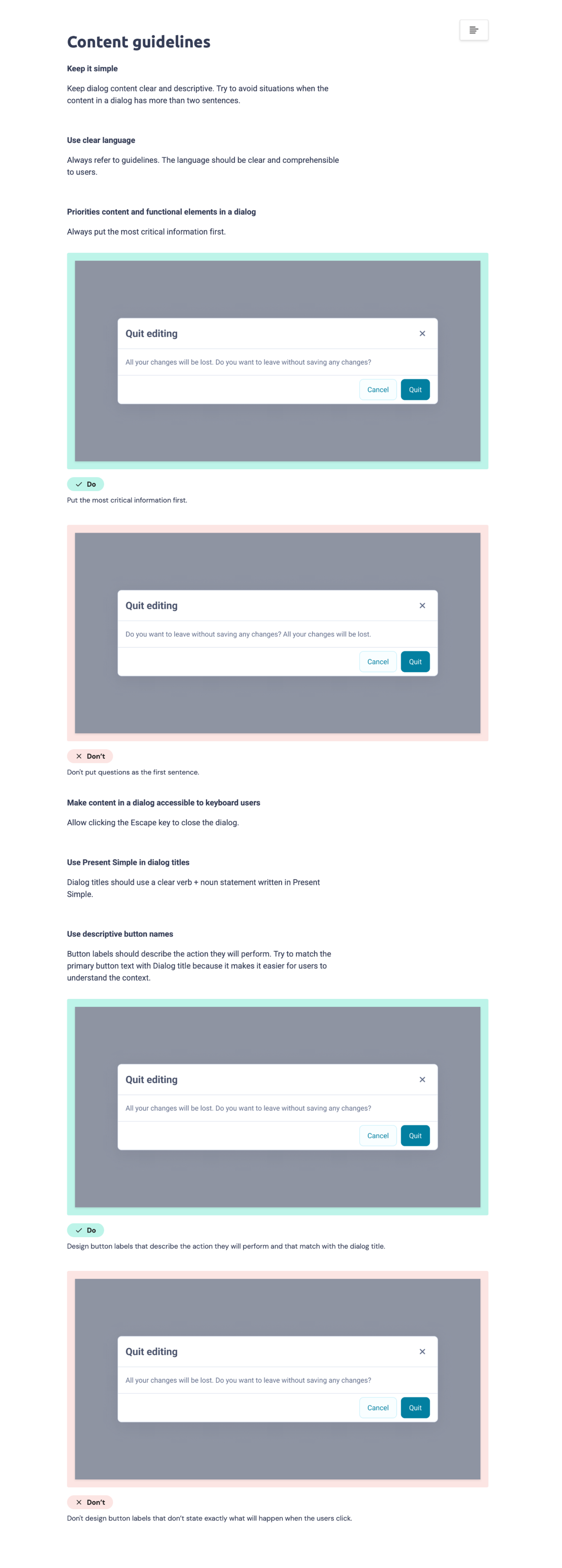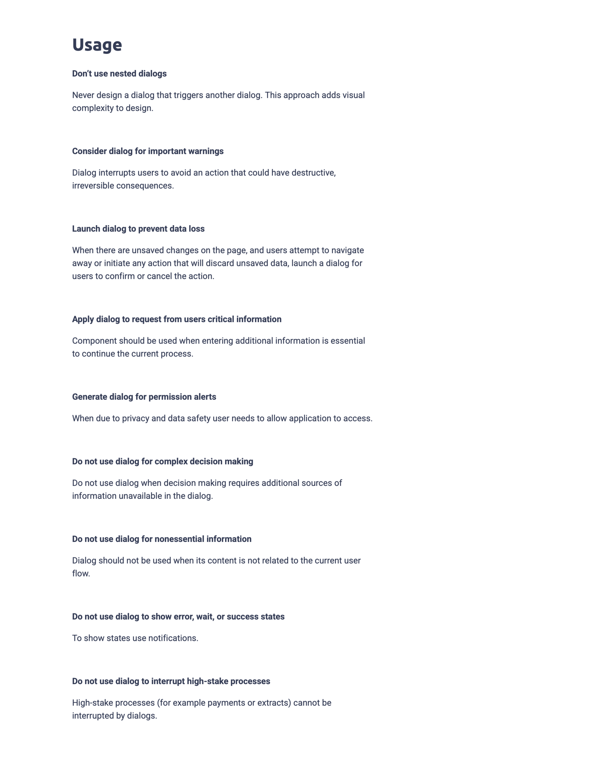 Zeroheight - Dialog - content guidelines