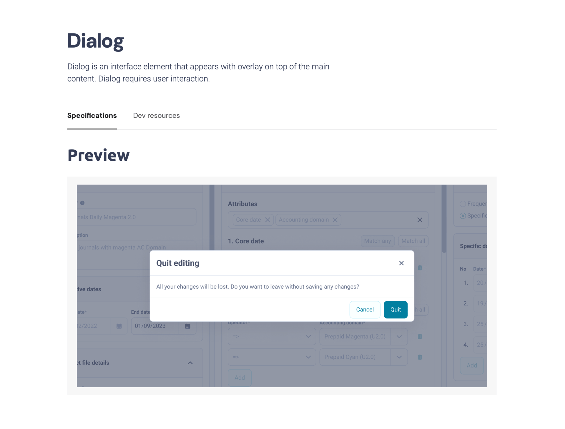Zeroheight - Dialog - usage
