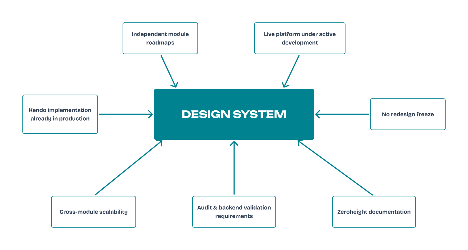 The design system was developed within multiple technical and organisational constraints of the existing platform.