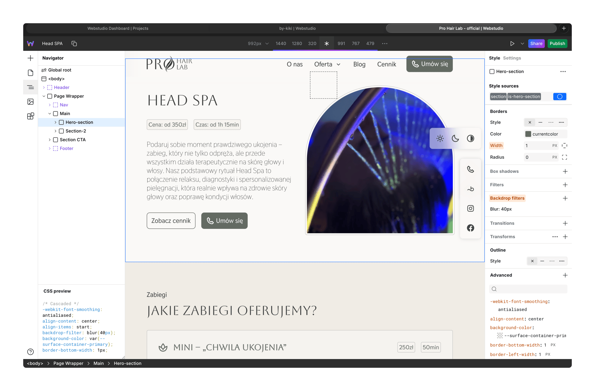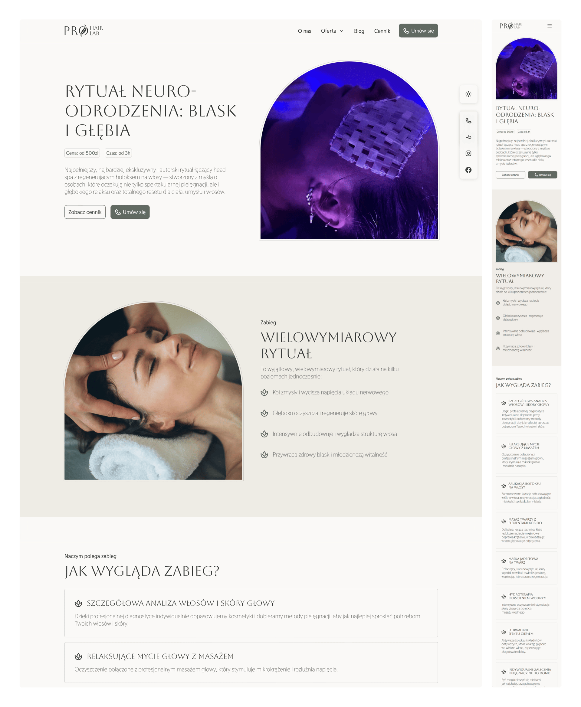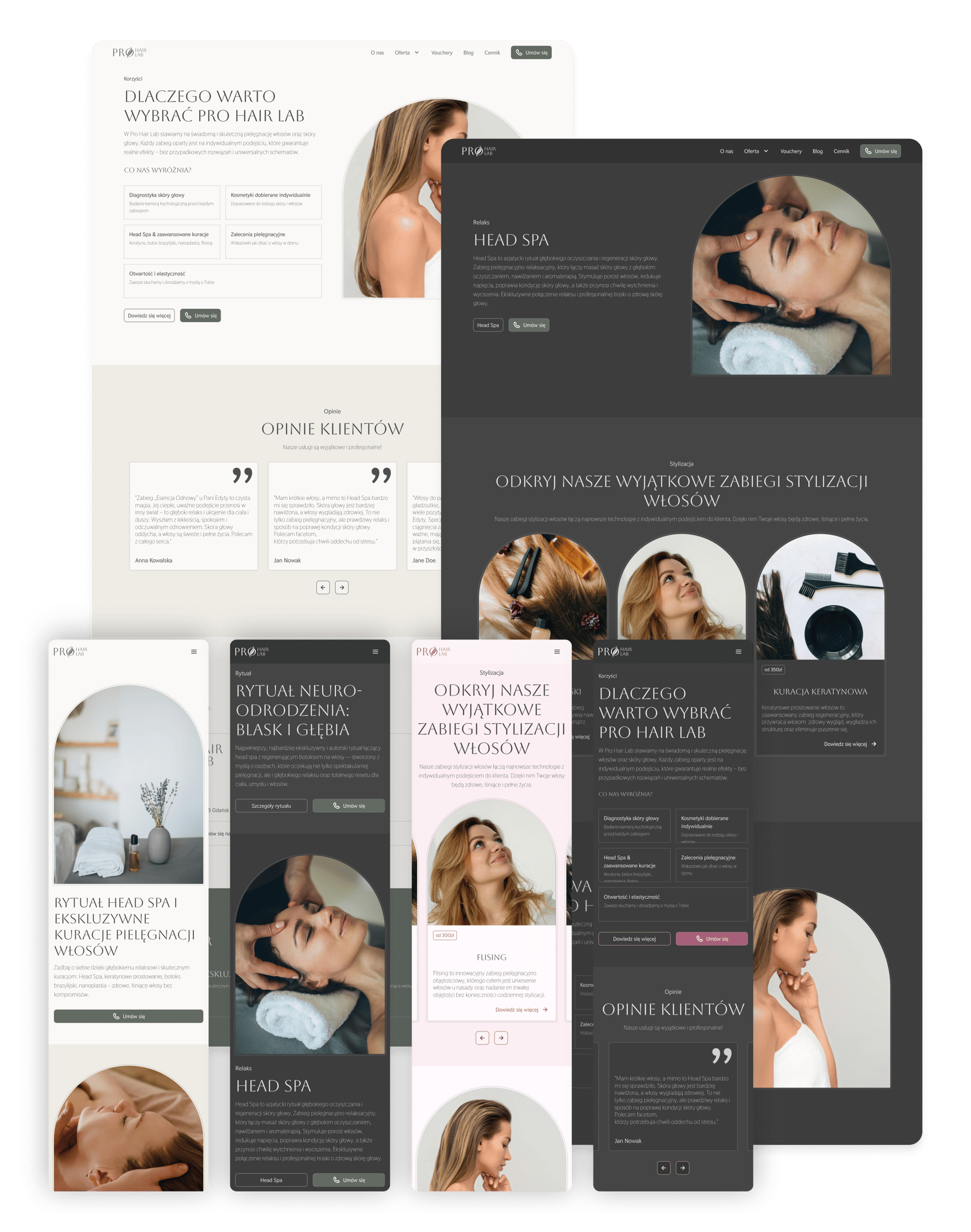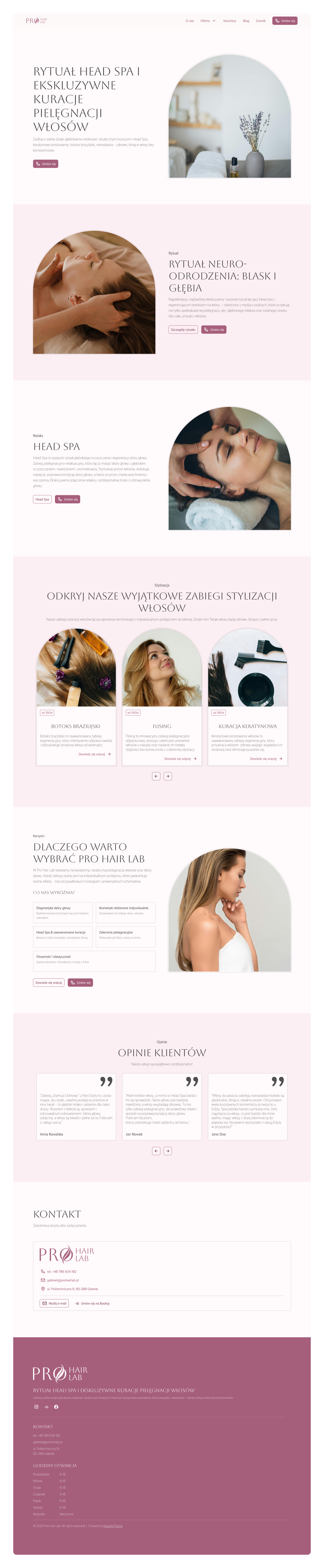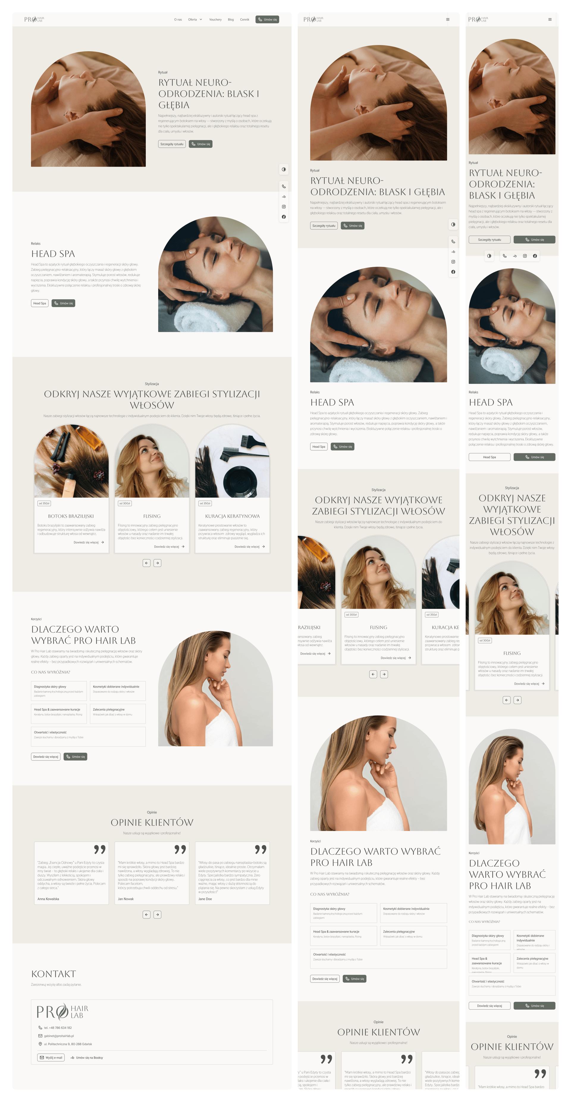Most clients browse salon websites on their phones, so the layout was designed mobile-first and then adapted to larger screens.